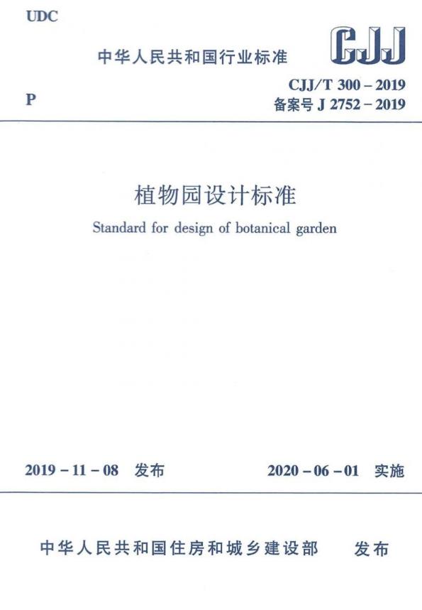 根據(jù)中華人民共和國住房和城鄉(xiāng)建設部2019年第286號公告,國家行業(yè)標準《植物園設計標準》,編號為CJJ/T 300-2019,自2020年6月1日起正式施行。
