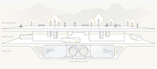 這座城市綿延約170公里,整體將與大自然融為一體。地下一層是行人專區(qū),另外兩層則用于基礎(chǔ)設(shè)施和公共交通建設(shè)。雖然沒有私家車,但是無論生活、工作還是娛樂,步行的話都能夠在五分鐘內(nèi)到達(dá)。即使乘坐公共交通,日常通勤時間也不會高于20分鐘后。